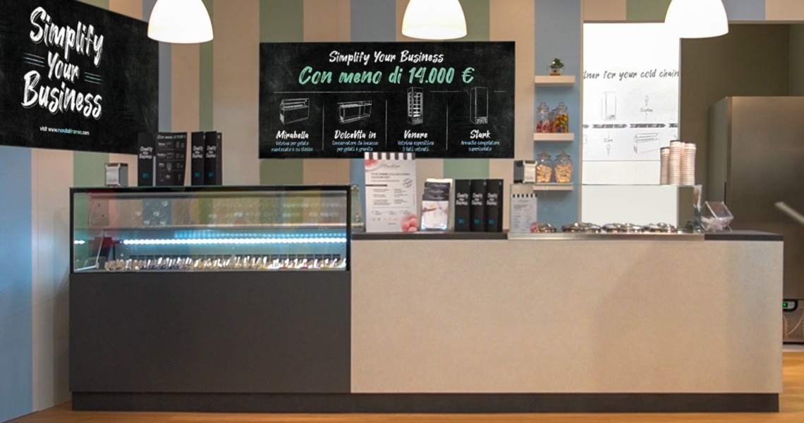 In quest’ottica di grande rinnovamento si inserisce il concetto di Simplify Your Business: la novità di quest'anno da parte di Mondial Framec rivolta ad un target di clienti che vuole realizzare o arredare gelaterie in franchising, in start-up, o nuovi punti vendita gelateria. Il tutto con meno di € 14.000.
