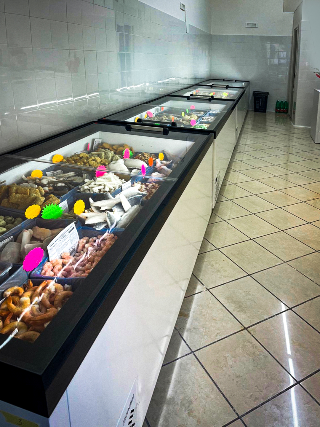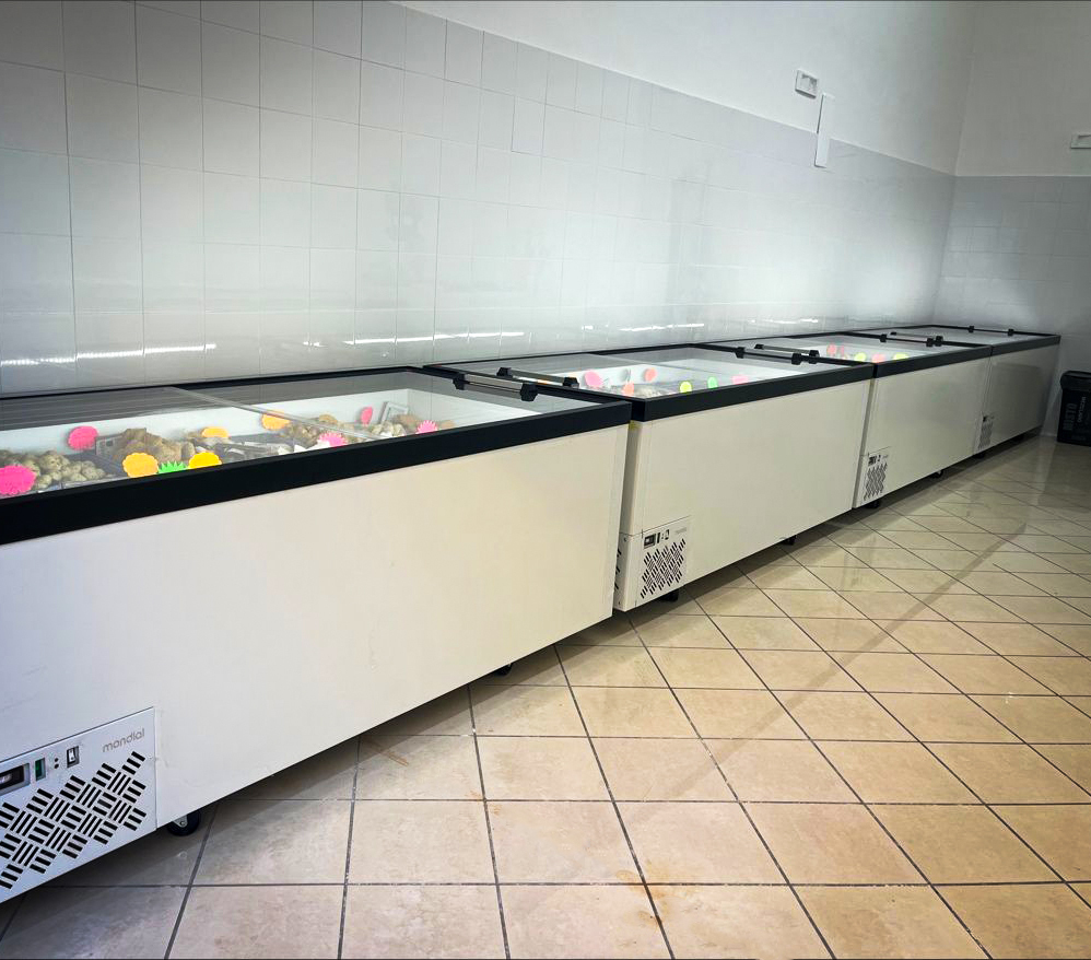 Isola vetrata negativa, vetro piano scorrevole, esposizione impeccabile per pesci surgelati